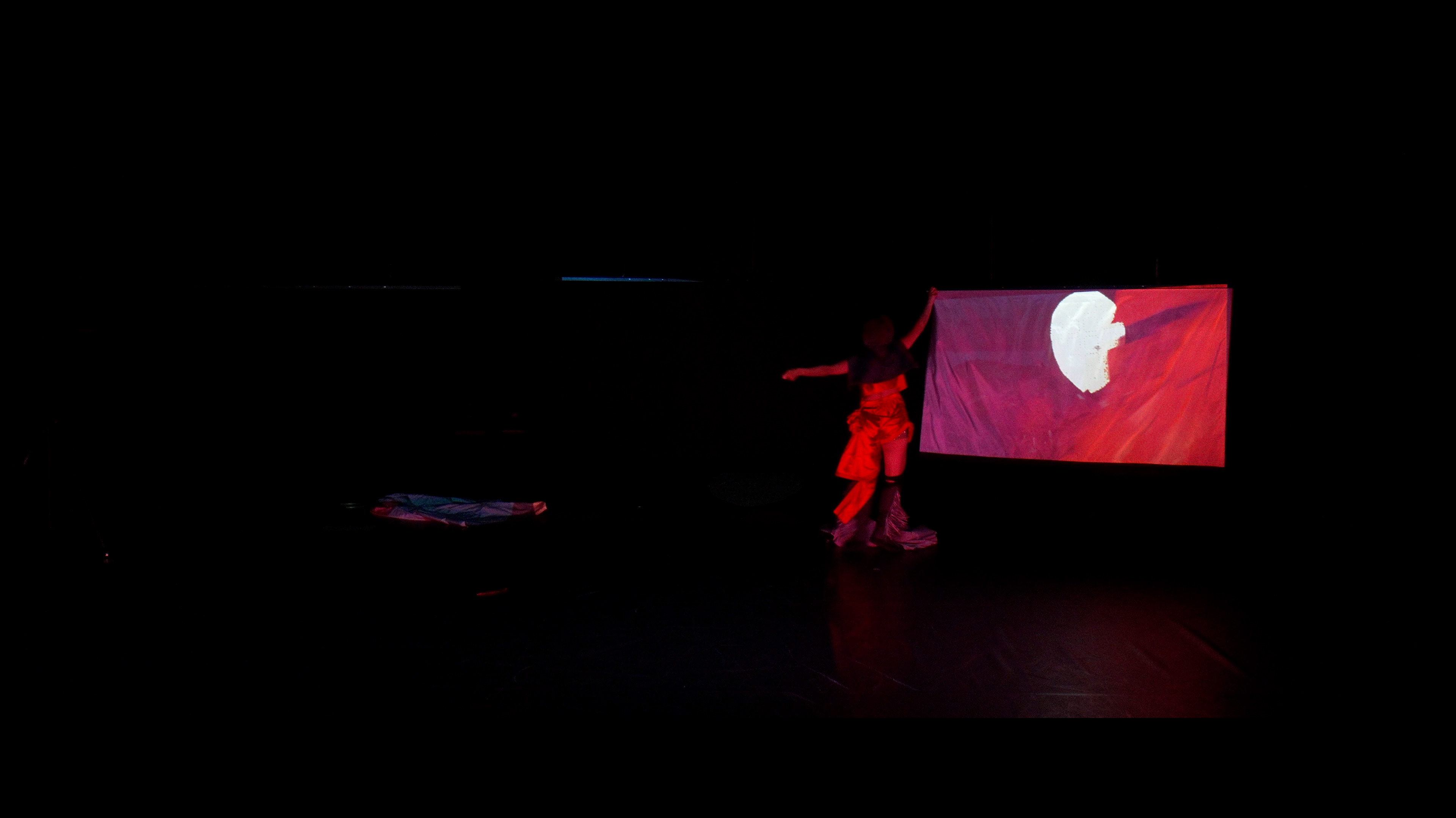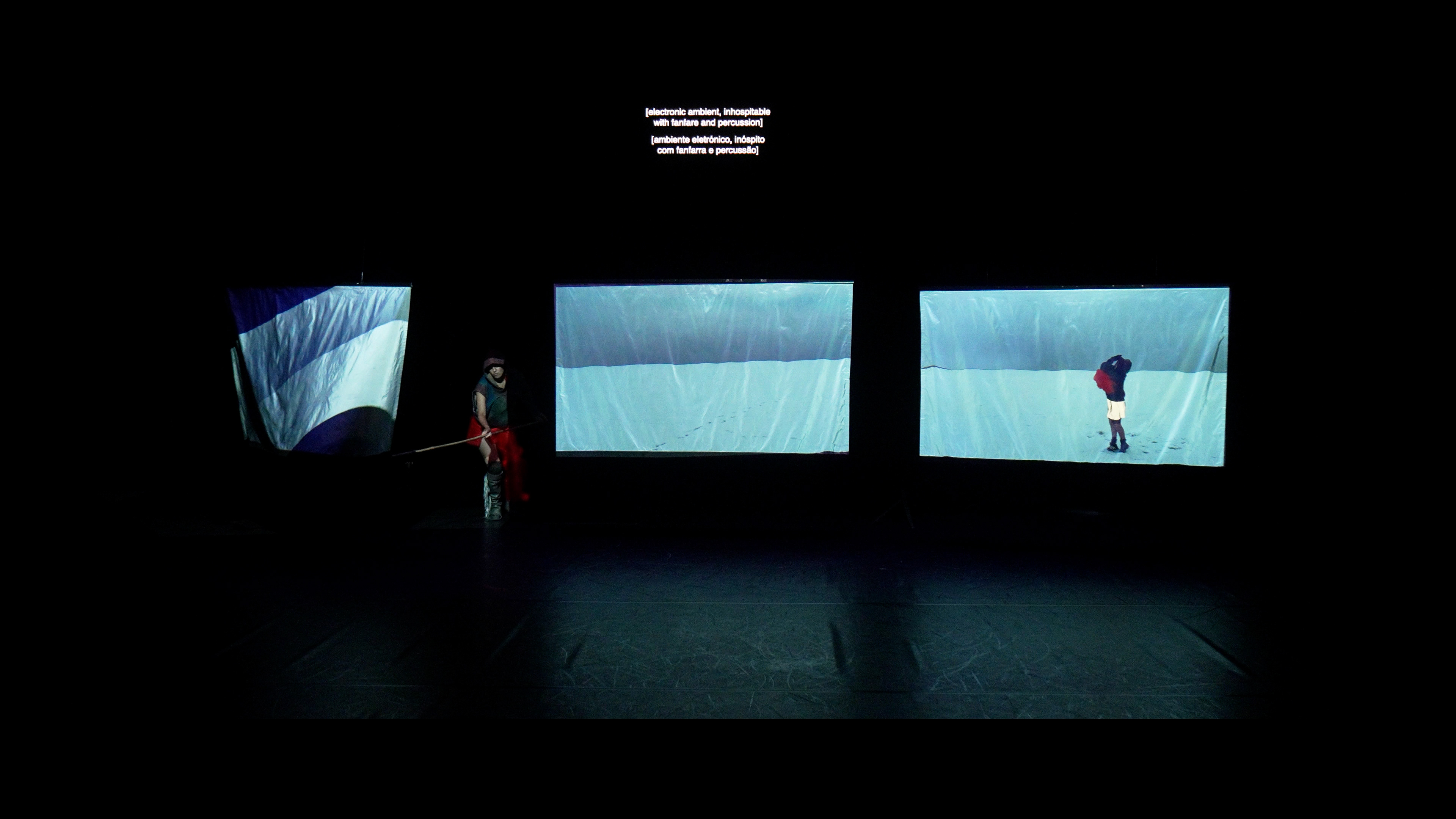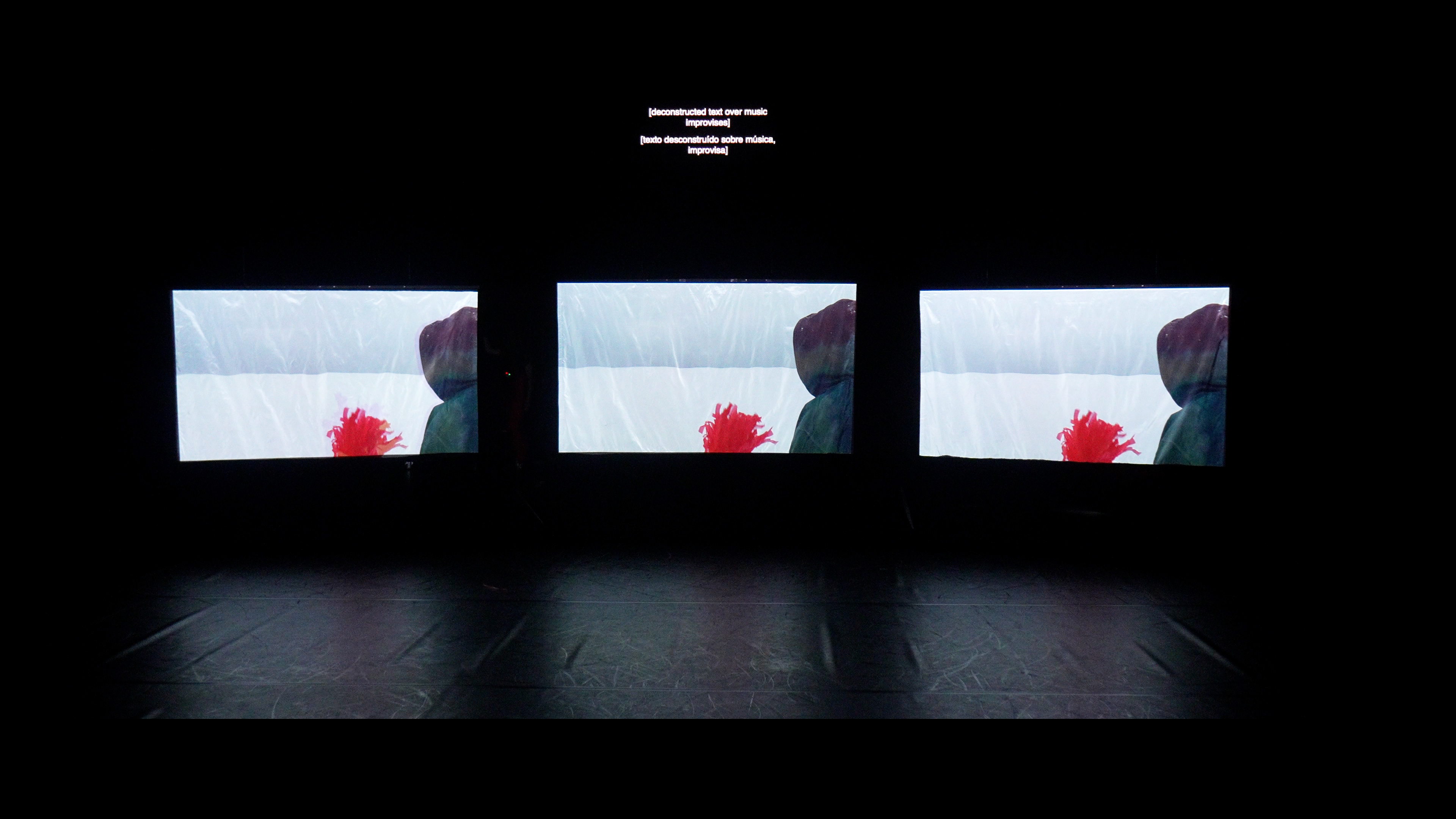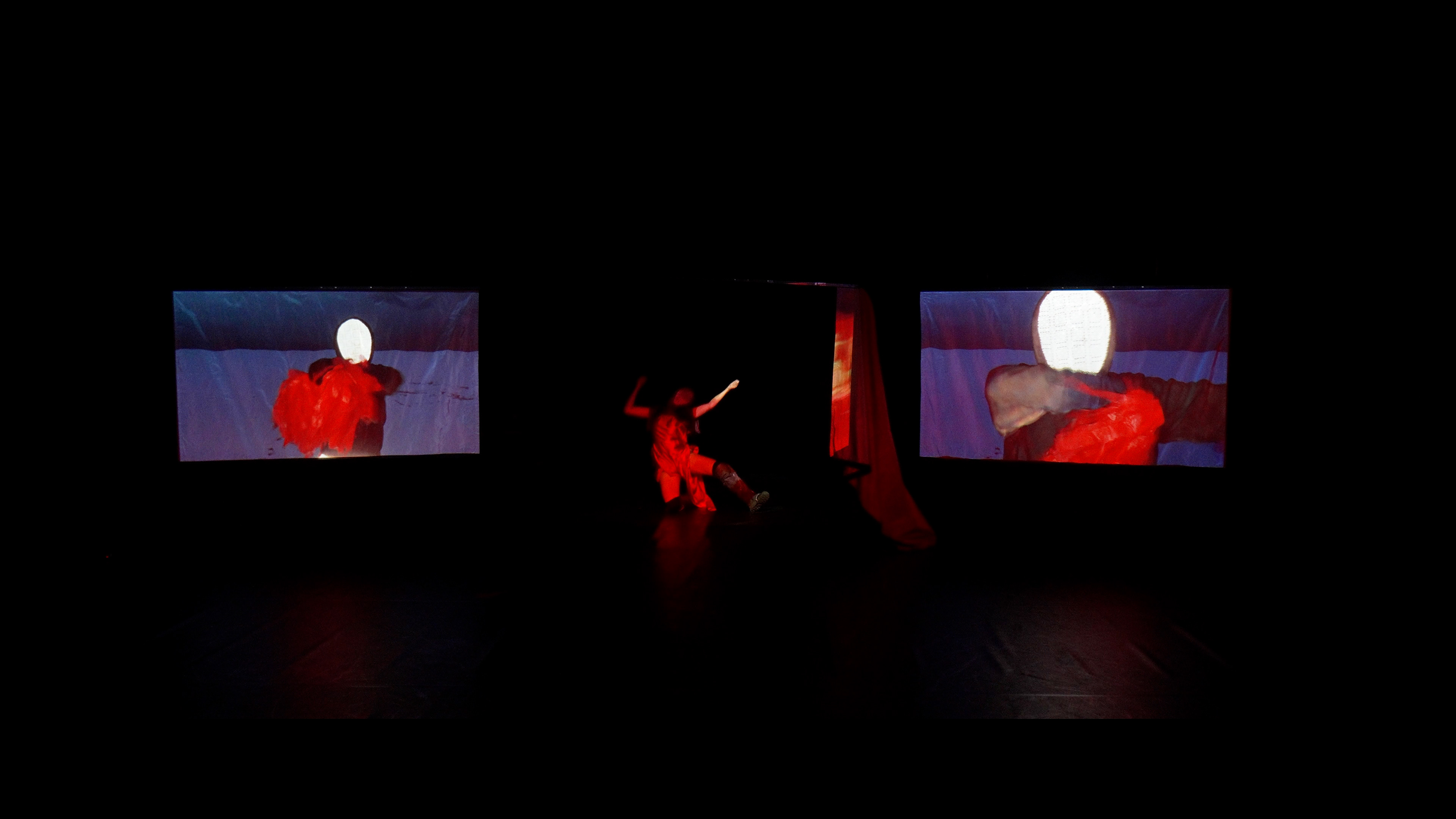 À medida que a dança se repete incessantemente no ecrã, outras forças emergem na escuridão do teatro.